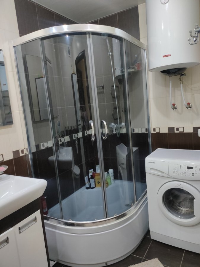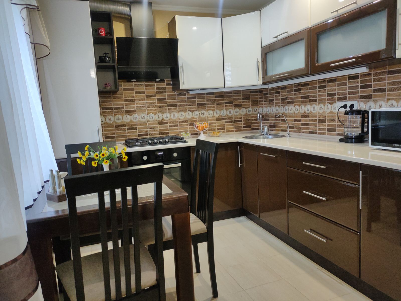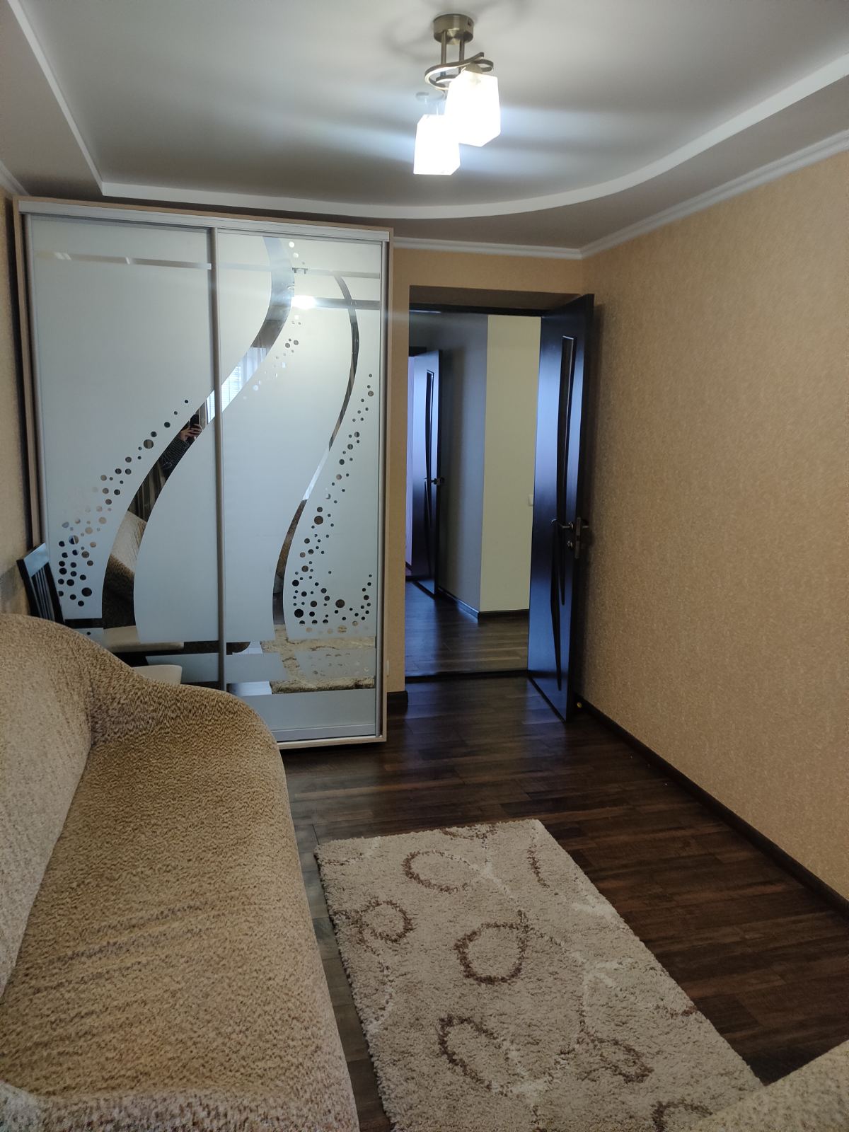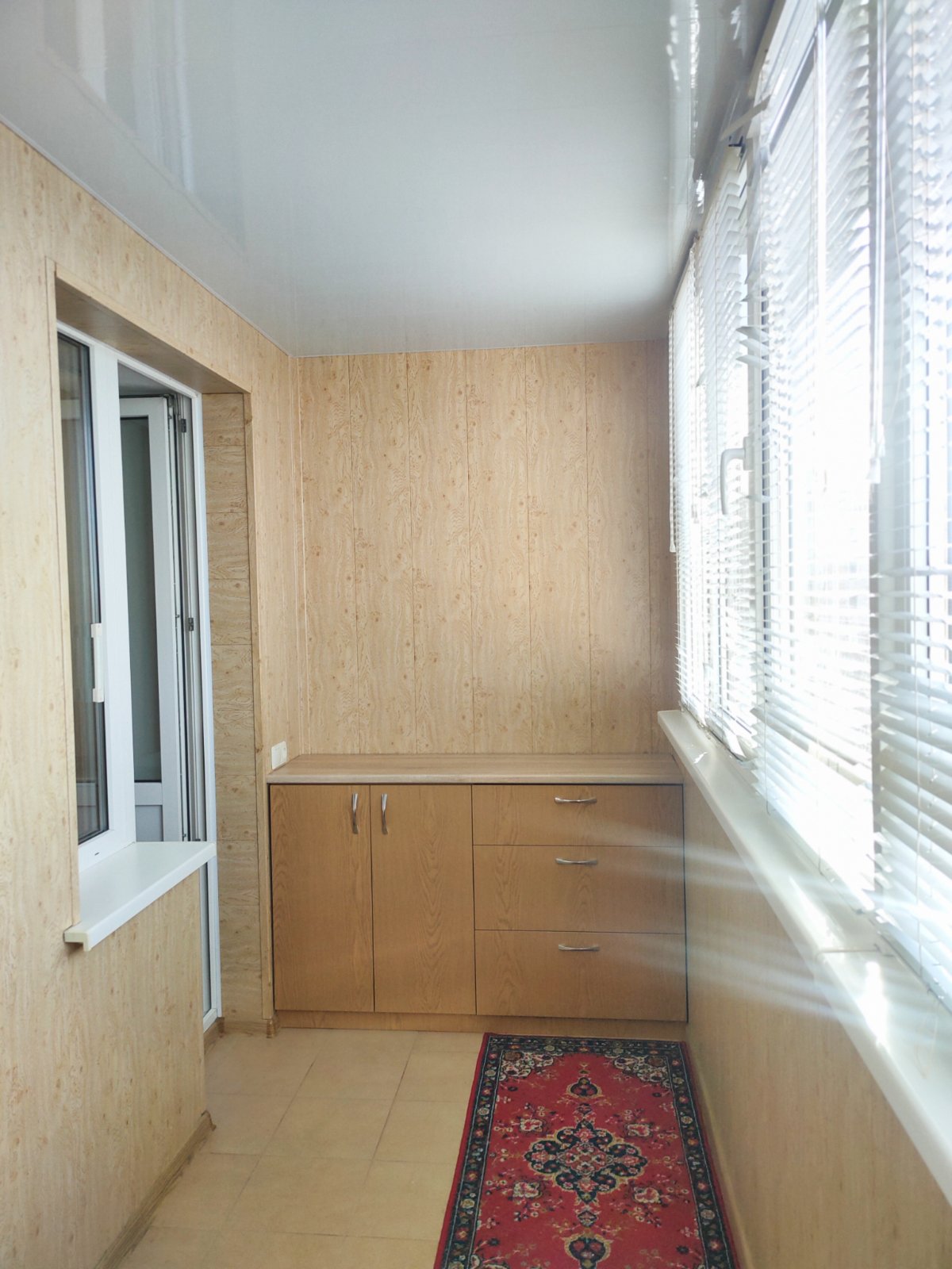 В квартире произведен качественный ремонт. Стены выровнены, потолки натяжные, полы - ламинат, новая проводка и сантехника. Установлена система теплый пол на кухне и в коридоре, окна - металлопластиковые.