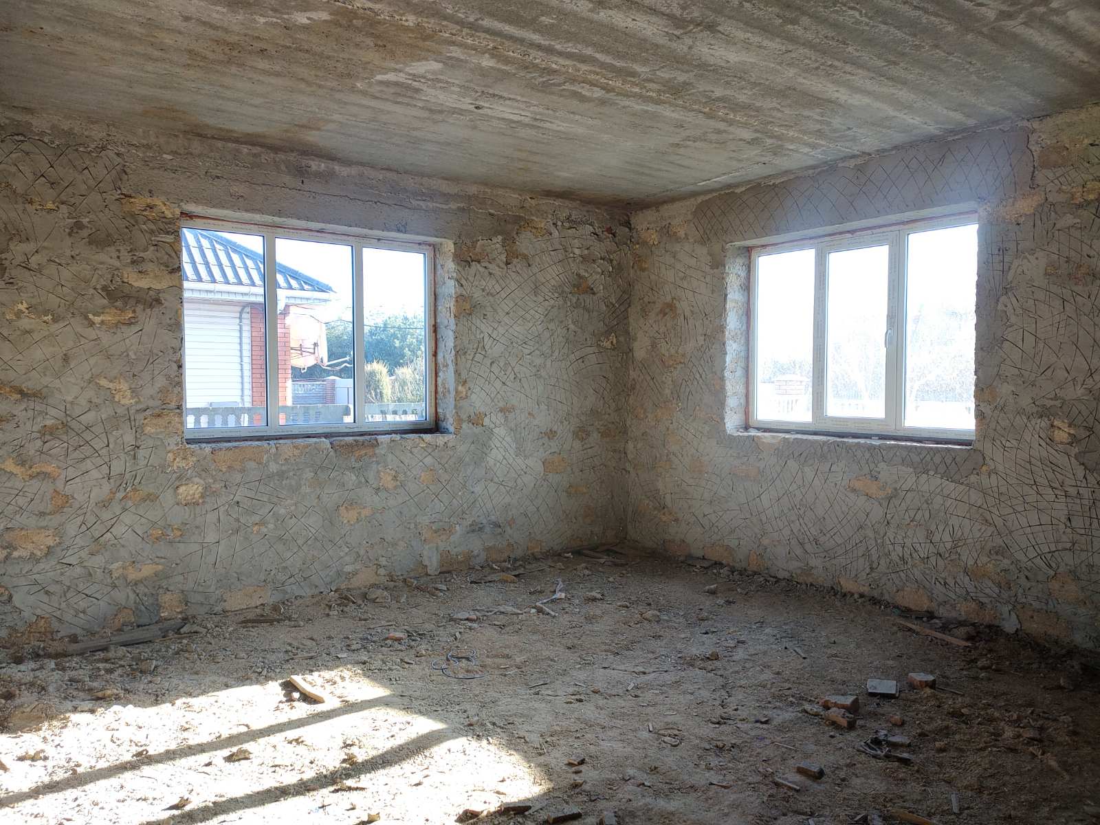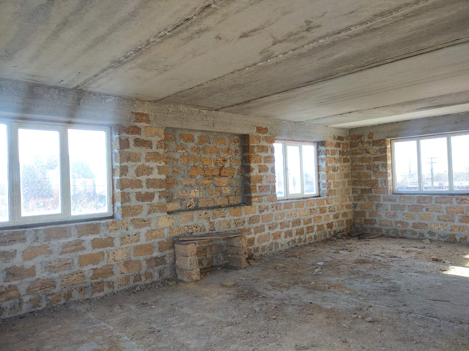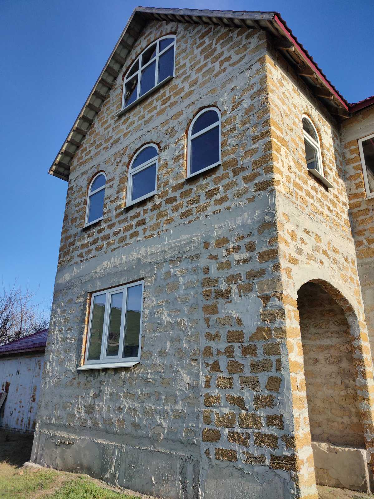 Дом построен из ракушняка, перекрытие - плиты, установлены металлопластиковые окна REXAU, крыша - металлочерепица (польская).
